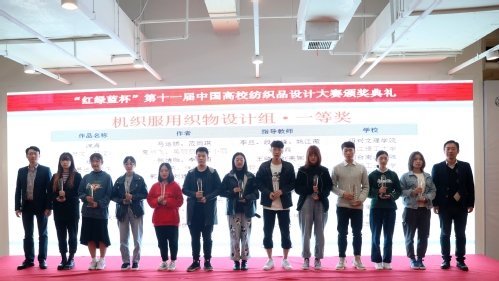 2019年11月16日上午,由中国纺织服装教育学会、教育部高等学校纺织类专业教学指导委员会主办的“红绿蓝杯”第十一届中国高校纺织品设计大赛颁奖典礼在绍兴柯桥举行。中国工程院院士蒋士成、中国纺织服装教育学会会长倪阳生以及多位业内专家、高校领导和来自全国30多所高校的获奖师生代表出席了本次颁奖大会。我校学生获得一等奖2项、二等奖7项、三等奖15项,同时,我校获得“最佳组织单位奖”。