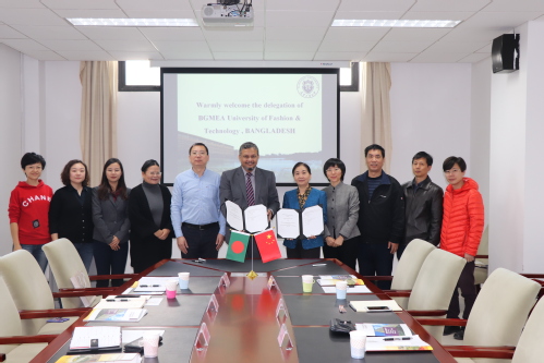 2019年11月15日,我校副校长赵宏会见了Ayub Nabi Khan,并代表学校与孟加拉BGMEA时尚与技术大学签署了校际交流合作备忘录。我校国际交流与合作处、纺织科学与工程学院、艺术学院及国际教育学院主要负责人参加了签约活动。在签约活动中,副校长赵宏对我校来华留学生教育总体情况,我校孟加拉籍留学生的培养以及毕业情况和Ayub Nabi Khan进行了深入交流。副校长赵宏同时介绍了我校一流学科建设的相关情况,对我校和孟加拉BGMEA时尚与技术大学在纺织、工程、艺术等领域的合作交流进行了展望,希望双方能在互派留学生、教师的科研合作以及两校的学科交流上开展深度合作。Ayub Nabi Khan对我校留学生教育、教师科研及学科建设等方面给予了很高的评价,希望双方能发挥各自的优势,在人才培养、教师交流等方面开展广泛合作。