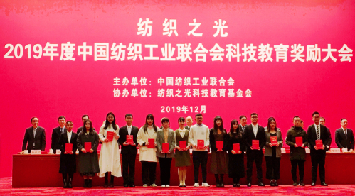 12月6日,由中国纺织工业联合会主办,纺织之光科技教育基金会协办的“纺织之光”2019年度中国纺织工业联合会科技教育奖励大会在庄重威严的北京人民大会堂举行,会上,甘露同学领取“纺织之光奖学金”特别奖获奖证书。
