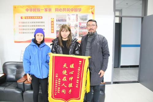 2019年12月23日上午,天津市民张先生拿着锦旗来到天津工业大学党委学工部,寻找感谢两个分别叫“爱格”和“冷敏”的少数民族学生。