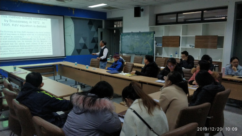 12月20日上午,李继彬教授清晰地讲解了一个旋转双组分Camassa-Holm系统的精确峰、周期峰和伪峰解的问题,给出了约束参数条件。在报告中,李教授严谨治学的态度给广大师生留下来深刻地印象;韩茂安教授针对研究生论文写作的问题,系统地叙述了论文写作的基本原则,介绍有关论文写作与课题研究的体会。下午,王明新教授首先对学院部分青年教师的国家自然科学基标书作了一对一地的详细指导,并结合一些共性问题提出了好的解决方案,最后作了关于具有自由边界的病毒传播模型的报告,阐述了病毒成功传播的关键因素。