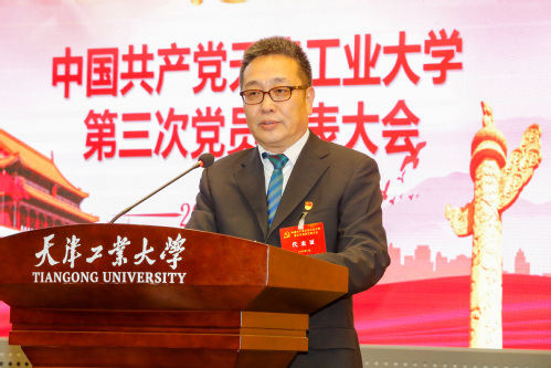 校党委书记俞绍平同志代表中国共产党天津工业大学第二届委员会向大会作了题为《守正创新 砥砺前行 奋力开创具有世界一流学科的高水平大学建设新局面》的报告。报告共分为4个部分:一、过去五年的工作回顾;二、新时代学校的历史方位和战略部署;三、开启全面建设具有世界一流学科的高水平大学新征程;四、全面加强和改进学校党的建设。