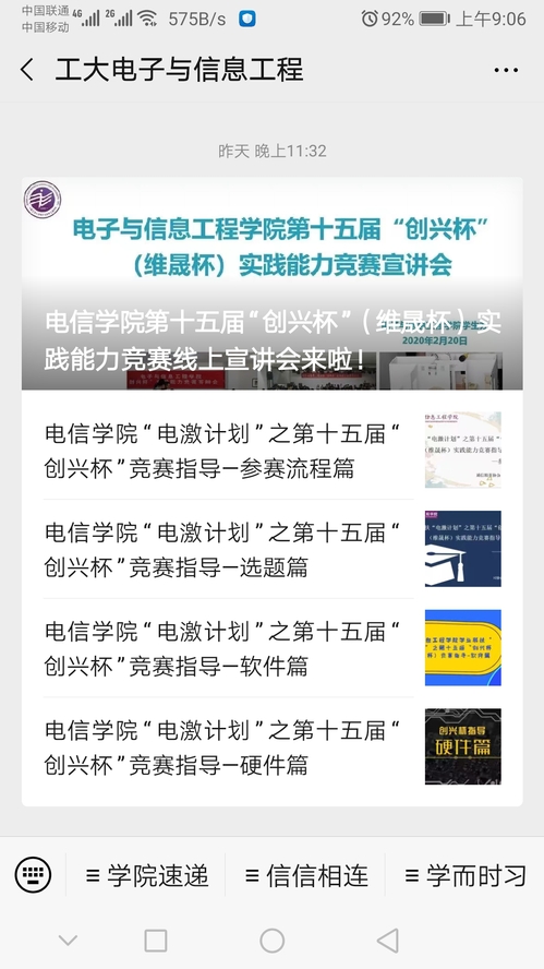 线上宣讲会的成功举办标志着电子与信息工程学院第十五届“创兴杯”(维晟杯)实践能力竞赛正式开赛。“创兴杯”实践能力竞赛于2005年开始,至今已连续举办十五届,主要面向低年级大学生,以培养培育学生的创新实践能力、专业兴趣、团队合作、刻苦钻研和专业报国等优秀品质和优良学风为宗旨,是学院将立德树人、学风建设、实践育人相结合的创新,深得学生们的喜爱,为各级各类大学生创新实践竞赛奠定了良好基础。(审稿:电子与信息工程学院 张谷 编辑:宣传部 柳婷)