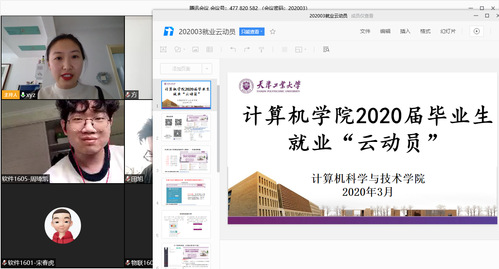 为深入贯彻落实党中央、国务院关于高校毕业生群体在“疫情”期间就业工作要求,按照学校就业工作相关部署,计算机学院于3月3日召开毕业班就业工作网络视频推动会。学院党委副书记方桂珍、学办主任田旭、毕业班年级辅导员以及2020届毕业生各班就业工作负责人共50余人参加,大会由学院分管就业工作辅导员张莘苑主持。