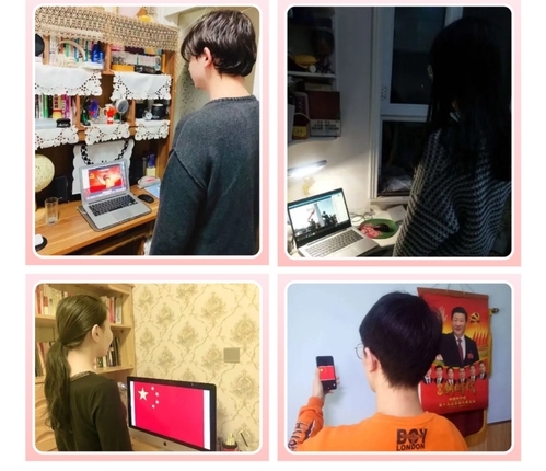 虽然身边一个同学也没有,只有一台手机或是一台电脑,甚至对于新疆的学生来说,由于时差关系,当地天还没亮,但随着国歌响起时,依然饱含深情地随着国旗升起而心潮澎湃,共同宣示了践行家国情怀,增强定力勇气,夯实学习基础的决心!