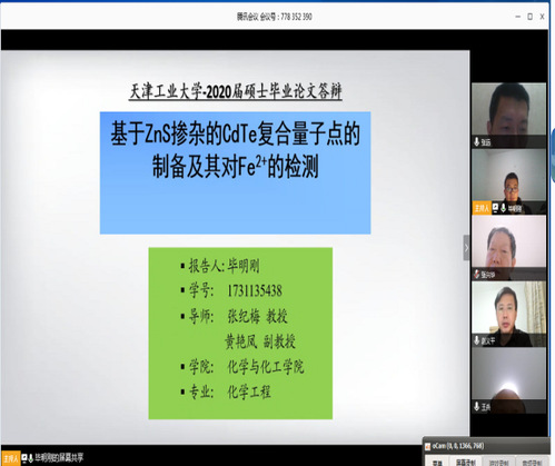 学位论文答辩是学位授予工作中最重要的环节,受新冠肺炎疫情的影响,目前不具备进行现场答辩的条件。按照市教育两委《关于做好2020年春季学期延期开学期间研究生教育教学工作的通知》和《天津工业大学2020年春季学期延迟开学期间研究生教育教学工作方案》中关于学位授予工作的相关要求,化学与化工学院积极应对、提前谋划,采取视频答辩形式平稳推进研究生学位论文答辩工作。