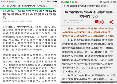 为加强疫情期间学生思想政治教育,市教育两委组织专家学者专门录制了解读疫情防控的思政专题课《津门千里 齐心抗疫》,我院副院长聂丽琴于2月10日以《坚定信心 齐心抗疫》为题,录制了其中的一节。目前课程已作为天津市大学生必上的抗疫专题课面向学生开课。3月1日,随着抗疫形势的进展,聂丽琴又以《中国力量决胜抗疫阻击战》为题,录制了第二堂抗疫思政专题课,于3月9日通过天津广电网络有线电视、网络广播电视台IPTV、津云APP、北方网四大平台同步上线的《广电云课堂》向全市初三学生开课。抗疫思政专题课结合当前“抗疫”形势,深入阐述在以习近平同志为核心的党中央坚强领导下,全国上下齐心协力抗击疫情的中国力量、中国精神、中国担当,对同学们进一步坚定抗疫信心、坚定中国特色社会主义“四个自信”、传承发扬爱国主义精神,发挥了积极作用。