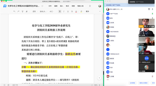 根据天津工业大学《关于做好2020年毕业生研究生学位授予相关工作的通知》和疫情防控期间毕业生就业工作的相关部署要求,为更好地了解我院毕业生研究生的思想动态、毕业设计进展及网上就业签约情况,进一步做好毕业生思想教育引导,推动毕业生适应学习生活新方式,最大限度降低疫情对毕业生就业的影响,3月12日,化学与化工学院召开研究生毕业生线上座谈会,学院党委副书记邵伟、学办主任陈虹及各年级辅导员,硕士毕业班全体学生参加会议。