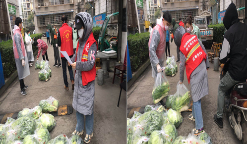 3月7日,汤应薇正在社区值班。那天正值给每家每户送爱心蔬菜的日子,社区值班人员要将所有蔬菜分发下去。不巧的是,天空下起了小雨,社区分发的雨衣又不够用,但没有一位值班党员退缩,大家有雨衣的穿上雨衣,没有雨衣的就戴上帽子,有的直接站在雨中给前来的居民分发蔬菜。在看到居民们拿到爱心蔬菜后露出开心的笑容,党员同志们战“疫”必胜的志更坚、劲更足了。