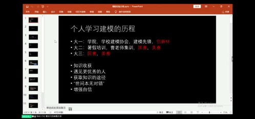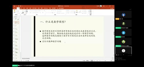 直播中,孔酉华同学借助PPT展示,从建模在实际生活中的运用、模型分类、建模过程、参赛队伍分工协作四个方面,为同学们进行了细致讲解。曹泽文同学通过PPT讲解,以大一至大三的时间轴顺序,介绍了本人在各类竞赛实战中获得的宝贵经验,对具备不同学习基础的同学从如何提高编程能力方面进行具体分析,总结了近两年建模国赛题目的共性,并强调团队协作、建立自信心的重要性。晏泉同学从“方法”、“取舍”、“坚持”三个部分,分享其学习建模的艰难历程,最后以论文撰写为出发点,详细介绍了如何学习、分析优秀论文,如何将已有经验内化为个人所得,如何切实提高个人的论文撰写功底等经验。李聪同学则通过分享自己在“暑假前”、“暑假中”、“暑假后”的备战经历,强调要想学好数学建模,除了十足的决心,更要做好一定会吃苦的心理准备,做好详尽的学习计划。同时,在做好身心准备、学好基础知识之余,还要善用各类辅助工具,这样才能在建模之路上少些阻碍。