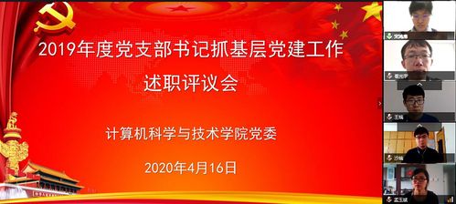 为进一步提高党支部书记履职能力,推进落实党建工作,按照学校党委工作安排,计算机科学与技术学院党委于4月16日以网络视频会议形式召开2019年度党支部书记抓党建工作述职评议会,学院党委委员、全体党支部书记、师生党员和群众代表共55人参会。会议由学院党委书记宋鸿鹰主持,校巡察办主任陈华列席督导。