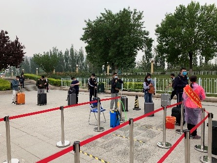 5月7日、8日,教师突击队员们和辅导员老师们在学校的统一安排下,积极承担起“三站一场”接站、学生公寓测温等工作,把复课开学疫情防控工作作为检验师生党员初心使命的主战场。学生返校现场,党员教师突击队员们检查绿码、测量体温、消毒行李、乘车登记……一个个细节认真做好,确保学生返校平安、有序。教师突击队员付景莉说道:“学校提前做好了相关预案,我们必须坚守岗位,各司其职,让每一个返校学生平安抵达宿舍。”看着雨里的学生,辅导员王玉辰赶紧去购买了两包纸巾,让学生擦掉脸上和头发上的雨水,以防感冒。5月8日,22:53随着最后一名来自湖北的同学到达天津工业大学西站接站点位置,至此疫情返校西站接站任务圆满结束了,这次有速度更有温度的接站划上圆满的句号。