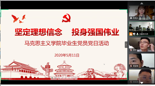 2020年5月11日,马克思主义学院举行了“坚定理想信念 投身强国伟业”毕业生党员主题党日活动。学院党委书记王丽伟、党委副书记钟彬、第二研究生党支部书记李元浩以及全体毕业生党员参加。会议由学院党委副书记钟彬主持。