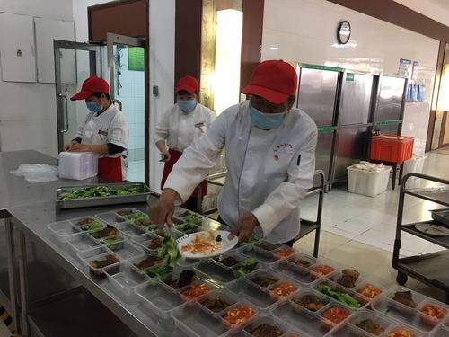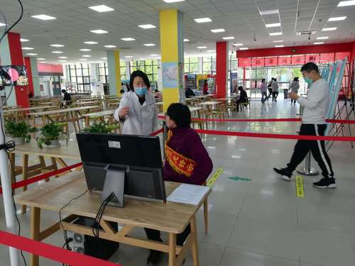 为做好餐饮保障和食堂疫情防控工作,膳食、采购党支部在各食堂入口安排专人负责体温检测,对就餐师生进行温度测量,设置专人维持就餐秩序,引导学生不扎堆、不聚集,排队保持1米间隔。并且对各食堂规定了限流人数,保证就餐间隔,配置数量充足的一次性打包用品,保障师生外带需求。精心做好学校工大宾馆临时隔离观察点配餐工作,膳食管理科赵清同志自隔离点启用后,牺牲大量个人休息时间,每日风雨无阻为隔离观察学生送去带有后勤温度的盒饭。毕业生党员先锋队在东苑二食堂、兰苑餐厅及西苑食堂几个开放就餐的食堂进行轮班值守,在各食堂出入口、测温区、扶梯处引导就餐人员按照地标线出入食堂。在食堂内负责维持秩序,提醒在食堂内就餐师生分开就餐、不要聚集。膳食、采购党支部党员和毕业生志愿者们每天早晨7点、中午11点就到岗执勤,晚上七八点钟离开,通过大家的辛苦努力,目前食堂就餐环境良好,就餐秩序井然。