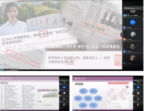 五名优秀的学生用亲身经历讲述天工学子永不言弃的青春故事,与学弟学妹共话青春韶华,展现了我校学子自强不息、积极进取、奋勇拼搏的青春风采,向广大学弟学妹传承天工学子爱国奋斗、争创一流的精神品质。他们精彩的在线宣讲,隔屏赢得了师生强烈认同,同学们纷纷表示深受启发,收获很大,优秀学子的榜样故事为自己日后的学习和生活明确了奋斗的方向,注入了精神动力。