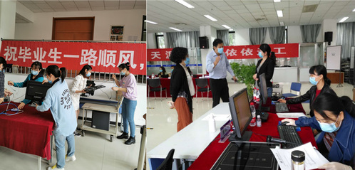 毕业生返校是图书馆迎接复课开学后第一场“大考”,为确保防疫工作万无一失,图书馆实行了预约入馆、离馆签退的管理方式;在校领导的直接关心、部署下,安装了红外测温仪;所有职工轮流值守,严把入口关的同时做好咨询服务工作;及时发布毕业生办理手续流程通知,尽最大可能实现毕业生离校工作网上“无接触”快捷办理,并于5月14日、15日、18日全天将流通部“搬家”到艺缘活动中心下沉广场为毕业生办理“一站式”离校服务。