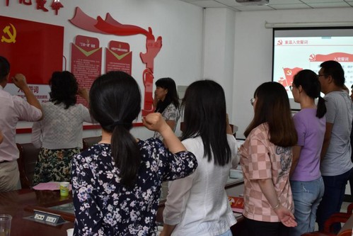 会议以支部党员成长发展的时间轴为主线,包括三大板块。第一板块是“回忆过去·传承天工情怀”。支部书记赵鹏带领大家回顾了支部四年来的发展历程,细数支部建设的点滴,并代表支部为毕业生党员送上祝福。随后,学院2019届毕业生吴胜超带领大家“云”游校史馆,重温天工发展历程,进一步增强党员们作为天工人的自豪感,强化了爱校荣校意识。第二个板块是“分享当下·共话党员成长”。支部毕业生党员余南海、蔡青君、杨治作为保研、就业、考研党员代表,从学习科研、就业面试等方面分享了自己的心得体会,畅谈未来规划和人生理想,并就入学教育、第二课堂、后勤保障等方面提出了宝贵建议,表达了对母校的感激与不舍。同时还发起“图书漂流”计划,倡议毕业生党员将专业书籍捐赠给学弟学妹,让知识流动起来,将爱传递下去。第三个板块是“展望未来·铭记初心使命”。全体党员线上线下同时面对党旗、举起右手,重温入党誓词,庄严宣誓。同时,支部为每一位毕业生党员定制了专属的政治生日贺卡,希望大家通过政治生日贺卡常忆起加入中国共产党的庄严时刻,不忘初心、牢记使命,勇敢踏上新征程。