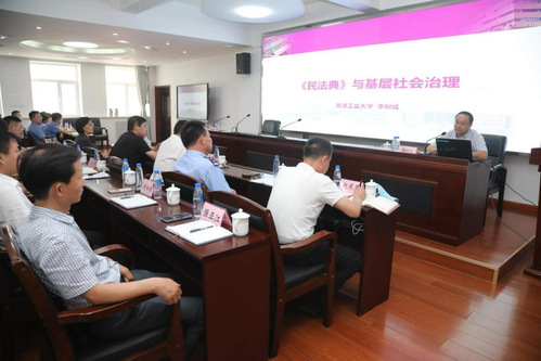 为深入贯彻天津市委、市教育两委和学校党委关于开展学习宣传《中华人民共和国民法典》的相关要求,落实天津市法学会、市司法局、团市委关于法治文化基层行活动的决策部署,2020年7月29日,我校法学院副院长李树成应中共天津市宁河区委政法委邀请,以天津市2020年青年普法志愿者身份为宁河区1700名政法干警作了题为“《民法典》与基层社会治理”的专题讲座。