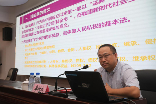 讲座围绕在基层社会治理中如何用好《民法典》这一问题展开,重点讲解了《民法典》对基层社会治理的意义、《民法典》与社会主义核心价值观、《民法典》在主体、客体和权利制度方面的改革与创新以及如何学好用好《民法典》等问题。