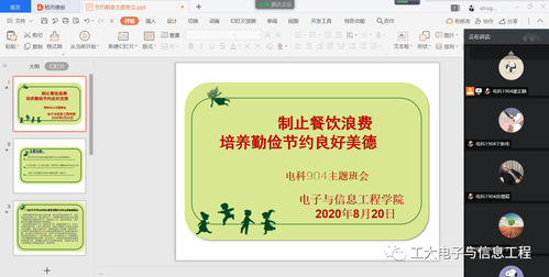 “一粥一饭,当思来之不易;半丝半缕,恒念物力维艰。”为响应习近平总书记号召,深入贯彻总书记指示精神,珍惜粮食、对餐饮浪费行为说“不”,电子与信息工程学院在学校统一领导和部署下,在正式复课开学前期组织开展“制止餐饮浪费 培养勤俭节约良好美德”主题班会,各年级班导师通过线上班会的形式学习了三项会议内容,分别是习近平总书记关于厉行勤俭节约、反对铺张浪费的重要批示精神;《人民日报》关于制止浪费、培养节约习惯的相关评论员文章;学校“拒绝浪费 从我做起|致全体天工师生的一封倡议书”。