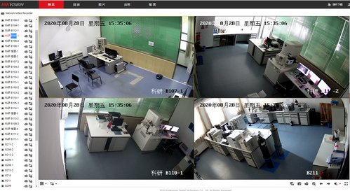分析测试中心门禁系统采用“测试平台预约——校园卡通行”制度,用户只有在预约时段内可以进出相应实验室,对实验室进出人员进行有效审核和控制,并形成完善的出入记录。疫情期间,实验室门禁系统通过与大型仪器管理平台联动,有效地进行了测试时段控制,从而杜绝了测试人员聚集的现象发生。中心24小时摄像监控系统,实现了实验室的分区分级管理和远程监控,可以让管理人员随时随地在校内外查看实验室内部情况,持续保存30天的视频监控数据,成为实验室安全问题核查、追踪、防护的有力保障,亦成为疫情期间实验室安全管理的重要补充。