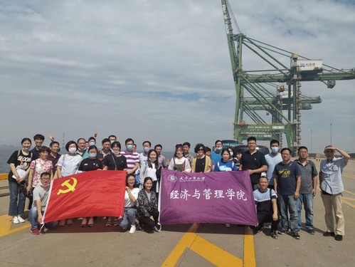 随后,学院师生前往邮轮母港和太平洋国际码头。在邮轮母港客运大厅,大家听取了有关负责同志对邮轮母港的发展历程、成长脉络、功能定位及发展航运、贸易、金融及旅游经济的规划与发展概况讲解。太平洋国际码头,拥有着国际先进的集装箱装卸设备,当师生们看到一列列满载的集装箱,感受到了我国经济受疫情影响后逐渐复苏的强大动力。