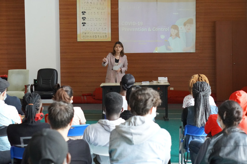 最后,学院直属党支部副书记兰娜就国庆节、中秋节假期安全和新冠肺炎疫情常态化防控进行了专题安全教育。兰娜副书记向留学生们传达了学校和学院对于双节假期和疫情防控的工作精神,并结合留学生特点深入细致讲解了节假日期间各项安全注意事项和科学防疫知识。为确保会议质量与效果,兰娜副书记还就此次教育大会内容进行了现场提问,考察了留学生对在华安全知识的了解和掌握程度,现场气氛活跃,学生反应良好。