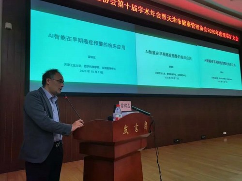 2020年10月13日,我校数学科学学院、应用数学中心雷锦志教授应邀在天津市健康管理协会第十届学术年会作题为《AI 技术在早期癌症预警的临床应用》的专题报告。本次会议由天津市健康管理协会主办,解放军天津康复疗养中心协办。天津市健康管理协会的专家学者和本市各级医院、民营健康管理机构的专业人士参加了本次会议。