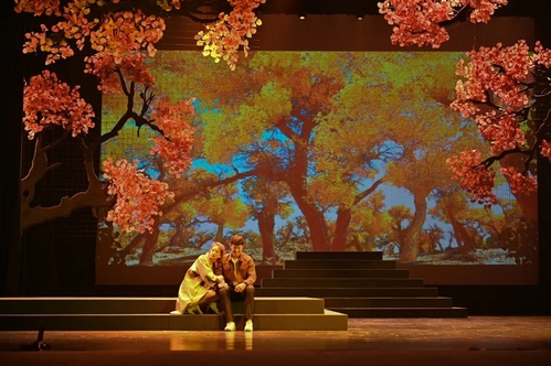 话剧《金色胡杨林》取材真实的支教故事,讲述了2018年以来我市高校1200余名师生投身和田地区幼儿园和小学教育教学、提升少数民族学生国家通用语言文字水平、铸牢中华民族共同体意识的支教故事。话剧分四幕,从大漠召唤、嫩枝展叶、西风胡杨到挺立风沙,舞台上一幕幕场景再现了支教生活,舞台影像全部来自支教一线,让戏里戏外融为一体,支教的故事和经历在主人公马平武的记忆中娓娓道来,生动诠释了支教大学生像一棵棵昂首挺立的胡杨,生长并凝结成扎根边疆、艰苦奋斗、自强不息、甘于奉献的“胡杨精神”。