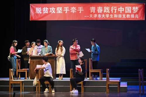 环境学院辅导员程一鸣说:“观看了以天津市大学生赴新疆和田支教为创作背景的话剧《金色胡杨林》,既感动又备受鼓舞,一颗‘心形’的胡杨种子,遇到了水就会破土成长、挺立于风沙之中,胡杨是爱,也是希望。打赢脱贫攻坚,教育是一泓永葆金色胡杨的力量源泉。