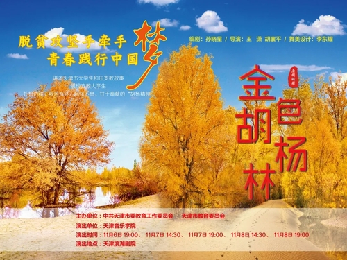 “这片土地上有我想见的人,有我想做的事,我要留在这里,做像胡杨一样的人……”2020年11月8日晚上7:00,由市委教育工委、市教委与天津音乐学院共同制作的教育扶贫原创话剧《金色胡杨林》在天津滨湖剧院举行高校巡演,我校近300名师生代表在现场观看了话剧。