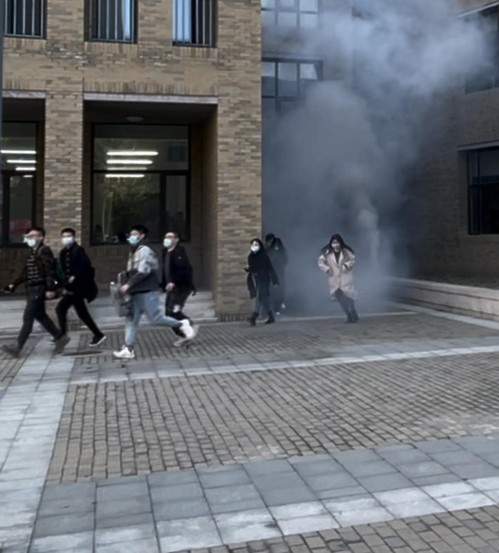 中午12:45,在纺织科学与工程学院西侧,240多名师生参加了消防安全知识培训、消防疏散逃生和灭火器实操演练。纺织科学与工程学院党委书记胡艳丽和常务副院长、党委副书记姜亚明等一行到场指导、观摩演练。火灾警报响起,模拟起火点位散发出浓烟,参与演习的师生在现场工作人员的指挥下用湿毛巾捂住口鼻、弯腰低身、快速有序通过浓烟区撤离至安全区域。随后,微型消防站消防队员快速进入火场展开扑救。