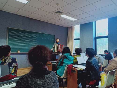 “百灵鸟从蓝天飞过,我爱你中国”“一条大河波浪宽,我家就在岸上住,这是美丽的祖国,是我生长的地方”,一曲曲悠扬的乐声环绕在多功能活动室上空,大家放下紧张的工作,利用午休时间展示交流。在琴声伴着歌声、歌声伴着欢笑、欢笑伴着美好中尽情感受音乐之美。如歌的岁月在乐谱上飘动,如梦的芳华在琴键上流淌,黑白键上的轻舞飞扬,激荡着震撼人心的力量,一曲曲演奏、一首首歌唱,表达了大家对音乐的执着与热爱。教职工们沉浸在“有音乐,没烦恼”的身心愉悦中,用心投入、用情感受,呈现出一幅和谐、感动、温馨、欢愉的画面。