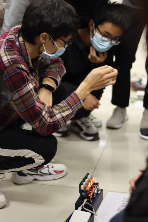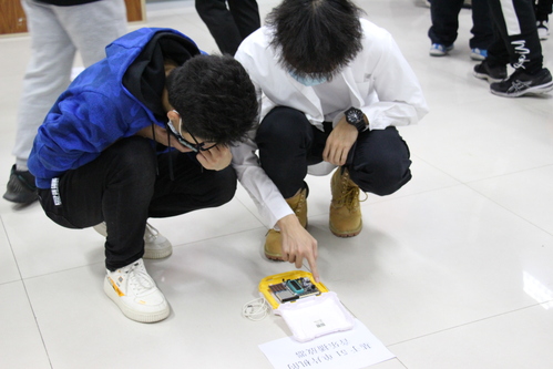 此次展览共展出包括疫情防控智能检测仪、六旋翼无人机、四足机器人、辉光管时钟、超声波避障小车、多功能智能家居等学生科技作品35件。在作品展现场,电子z1901李静敏团队制作的“疫情防控智能检测仪”吸引了多名新生的围观。李静敏同学介绍到,“疫情防控智能检测仪”可利用超声波测距仪和红外线传感器等仪器的共同协作来检测人体体温。除此之外,该设备还可以利用人工智能人脸识别技术检测被测者是否佩戴口罩,既方便又快捷。一件件灵动的作品吸引了新生们,有的驻足围观,有的亲手操作作品,有的现场向学长学姐请教……,新生们表现出强烈的好奇心和求知欲,沉浸在科技盛宴之中。很多新生表示,很高兴看到这么多的科技作品,要像学长学姐一样努力学习,从现在开始培养创新实践能力,用所学知识改变生活、服务社会。
