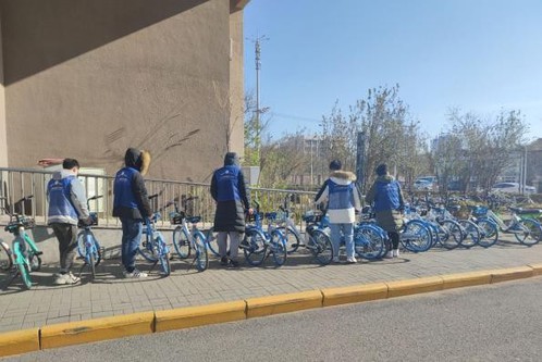 在近一周的志愿服务过程中,志愿者们每天在学生回公寓楼的高峰时段引导学生文明有序停放,将乱停乱放的共享单车摆放到指定区域,让道路畅通。志愿者们用实际行动向同学们传递了文明力量,发出了文明倡议,号召大家成为文明校园创建的参与者和实践者。