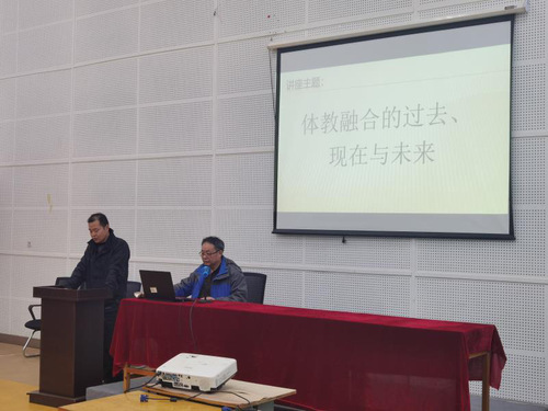 2020年12月15日下午,体育工作部邀请武汉体育学院体育理论教研室主任、研究生导师陈晴教授作题为《体教融合的过去、现在和未来》的专题讲座。体育工作部领导班子、教师以及20个体育社团学生代表共约50人到场聆听了讲座。