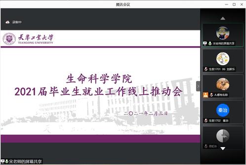 为切实推进毕业生就业工作,让毕业生正确认清就业形势,端正求职态度,充分把握就业机会,2021年2月3日晚19:30,生命科学学院召开2021届毕业生就业工作线上推动会,学院党委副书记李鹏、教学办关雪梅、学生办宋至刚、校友杨帆以及全体2021届毕业生参加了本次会议。