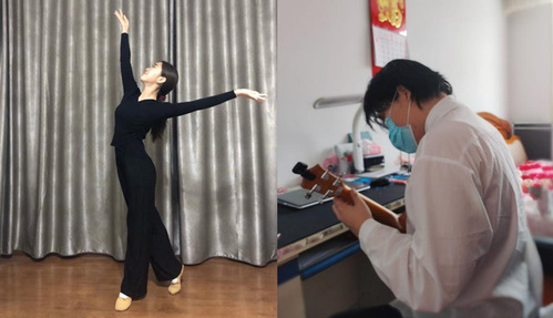 来自化学工程与技术学院青鸽志愿者服务团的志愿者——应化1803班方舒彤、制药2002班张莹莹利用自己的特长录制节目,分别为老人们带来了舞蹈表演和尤克里里弹唱。方舒彤的古典舞舞姿优美,张莹莹的尤克里里独奏也丝毫不逊色。在夏威夷,尤克里里被誉为“到来的礼物”,这也正寓意着同学们为老人带来的精彩表演。