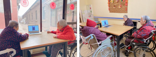 收到视频后,鹤童北京月坛院和四川绵竹院的志工们将志愿者们的视频给老人们播放,志愿者们的才艺和祝福为老人们带来了欢乐和温暖。