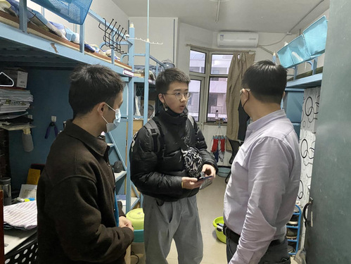 走访过程中,老师们与同学们亲切交流,深入了解学生寒假学习生活情况、返校后适应状态以及考研、就业等情况,听取了他们对学校学生管理、住宿条件等方面的意见和建议。同时,敦促同学们在校期间要严格遵守学校防疫规定,做好晨午晚检和宿舍通风消毒工作,叮嘱同学们保持良好的生活卫生习惯,尽快调整好心态,以积极的状态迎接新学期,让新学期有新气象。