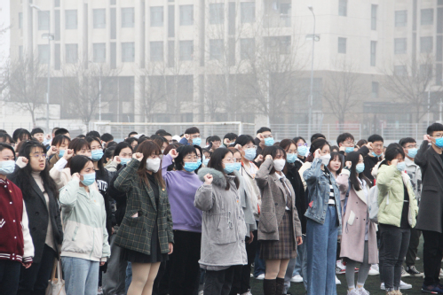 喜迎建党百年,讴歌光辉历程。为进一步鼓励青年学子在学好“四史”中彰显青春担当,增强明初心、知使命的思想自觉和行动自觉,2021年3月15日,环境科学与工程学院、化学工程与技术学院在望星体育场举行“同升国旗·同唱国歌——喜迎建党100周年”升旗仪式暨“3.15”诚信主题教育活动。环境科学与工程学院辅导员程一鸣,化学工程与技术学院辅导员赵鹏、王若男,两个学院的团学组织代表及2020级学生参加了本次升旗活动。