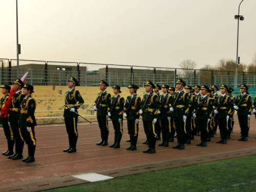 清晨七时整,升旗仪式正式开始。国旗班的同学们英姿飒爽,步伐矫健,护送着鲜艳的五星红旗正步走向旗杆。伴随着激昂的《义勇军进行曲》,全体师生面向国旗肃立致敬。
