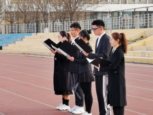 “你从十月的炮声中走来,你从嘉兴南湖中走来,你从井冈山走来,你从南昌起义的枪声走来,……”,学院学生社团代表用诗朗诵《奋斗百年路·启航新征程》表达了时代新青年对伟大中国共产党的崇高敬意,宣誓了青春心向党的执着信仰。