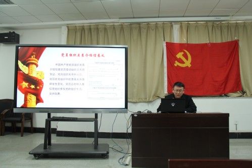 随后,学院专职组织员马鼎言老师针对党员组织关系转移政策进行讲解,介绍了党员组织关系介绍信的意义、转接过程、领取方式等内容。