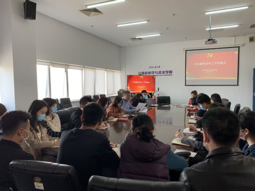 随后,武恩钧书记传达了学校党史学习教育动员部署会精神,解读了学校开展党史学习教育的实施方案,明确了总体要求、工作安排及开展形式,简要回顾了我党从1921年成立至今的光辉历程,阐述了我国在脱贫攻坚和抗击新冠疫情等方面取得的重要成果。他对学院各党支部开展党史学习教育提出三点要求:一要提高政治站位,深刻认识党史学习教育的重大意义;二要准确把握党史学习教育的核心任务;三要切实加强党史学习教育的责任落实,扎实有序开展党史学习教育,真正做到学史明理、学史增信、学史崇德、学史力行。