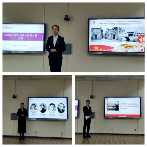 按照天津市委教育工委、天津市教委关于举办2021年天津市高校大学生思想政治理论课公开课大赛的文件精神,我校于2021年4月初启动了相关赛事的校内选拔赛,马克思主义学院思想政治理论课教师充分动员了我校本科生、研究生组队参加比赛。经过教师选拔、教研室选拔等层层筛选,最后共有18个小组进入了决赛。4月15日,2021年天津市大学生思想政治理论课公开课大赛——天津工业大学校内选拔赛决赛开赛,经过校内外7名专家组成的评委组对每一份参赛作品进行认真评选、现场打分,最终评出一等奖六名、二等奖六名、三等奖六名。