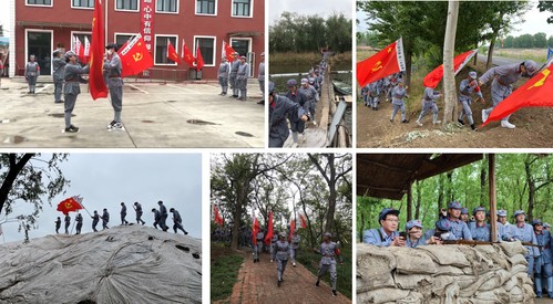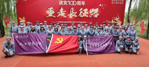 在“重走长征路”起点辛口镇第六埠村党群服务中心,大家穿上红军军装,举行了授旗仪式。在控制科学与工程学院党委书记李红霞的带领下,重温入党誓词。