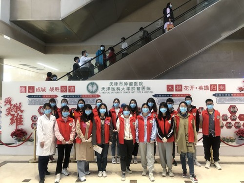 开展志愿服务。学院依托“爱之旅”学生社团,组织以学院2020级本科生为主、其他年级学生自愿参与的志愿团队,前往天津市肿瘤医院、天津慧灵基地开展志愿服务及社会实践活动。在天津市肿瘤医院,同学们协助工作人员,对密集人群进行导流、预约挂号、打印报告、为病患指路等;在天津慧灵基地,同学们帮助自闭症和智力障碍的学员,在陪伴、引导、照顾他们的过程中,让他们感受到热情与爱心。