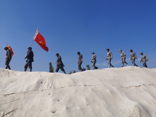 活动中,师生党员身着红军服,手持作战装备,以徒步行军的方式,体验突破三道封锁线、湘江战役、遵义会议、四渡赤水、强渡大渡河、飞夺泸定桥、爬雪山过草地、懋功会师、激战腊子口、三军大会师等10个还原当年红军长征历程重要点位,最后胜利会师。