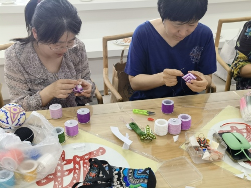 在书院兼职教师谷煜老师和何连妃老师的指导下,师生们用钩针钩编或用彩线缠绕,制作出一个个精美的“线粽”。在庆祝中国传统节日的同时,了解我校的纺织特色传承,提高动手能力和审美情趣。